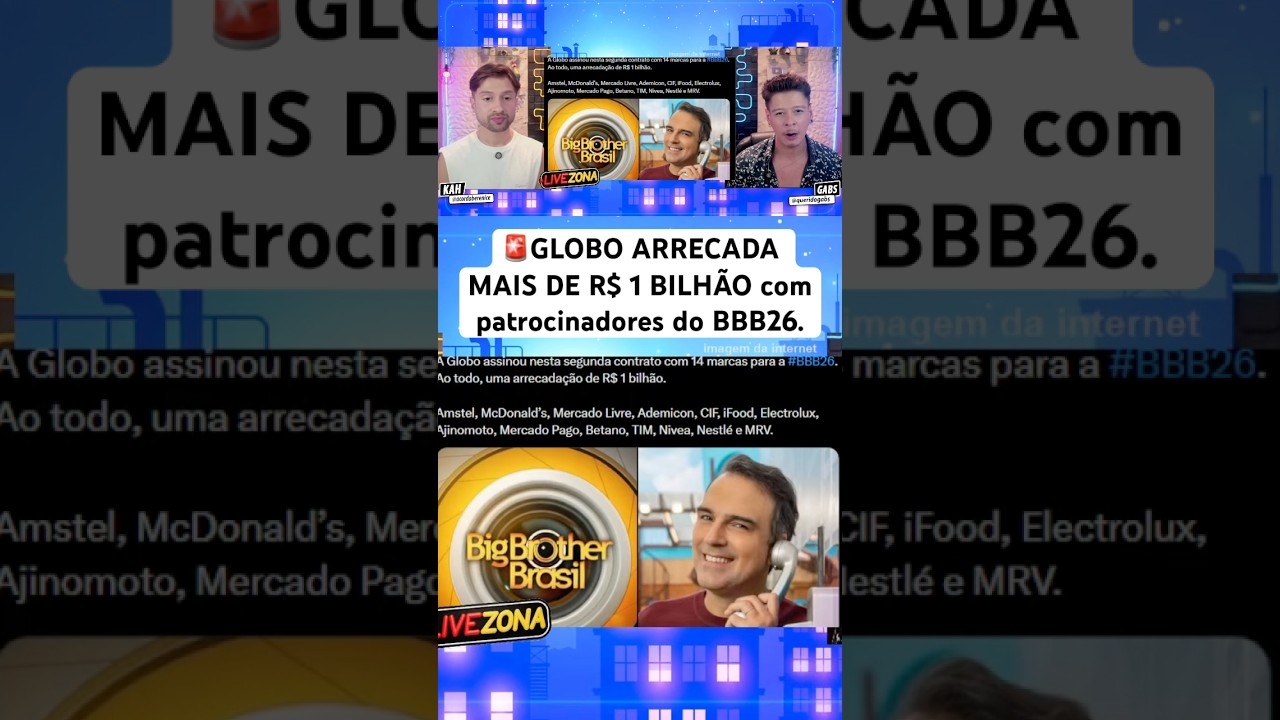 Categories Entretenimento 🚨Globo arrecada mais de R$ 1 bilhão com patrocinadores do BBB26 e pretendem transmitir no YouTube. By acordaberenice Estimated read time 0 min read dezembro 9, 2025 0