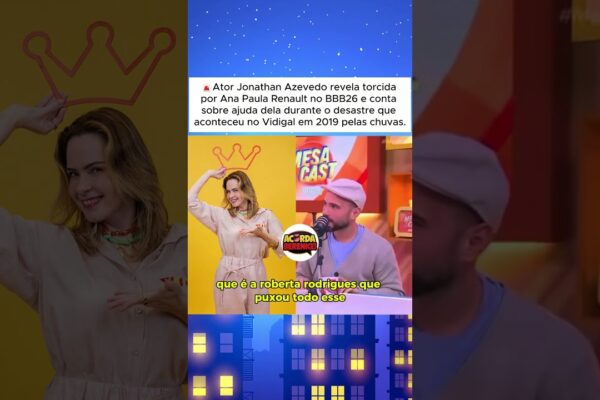 🚨Ator Jonathan Azevedo revela torcida por Ana Paula Renault no BBB26 e conta sobre ajuda no Vidigal.