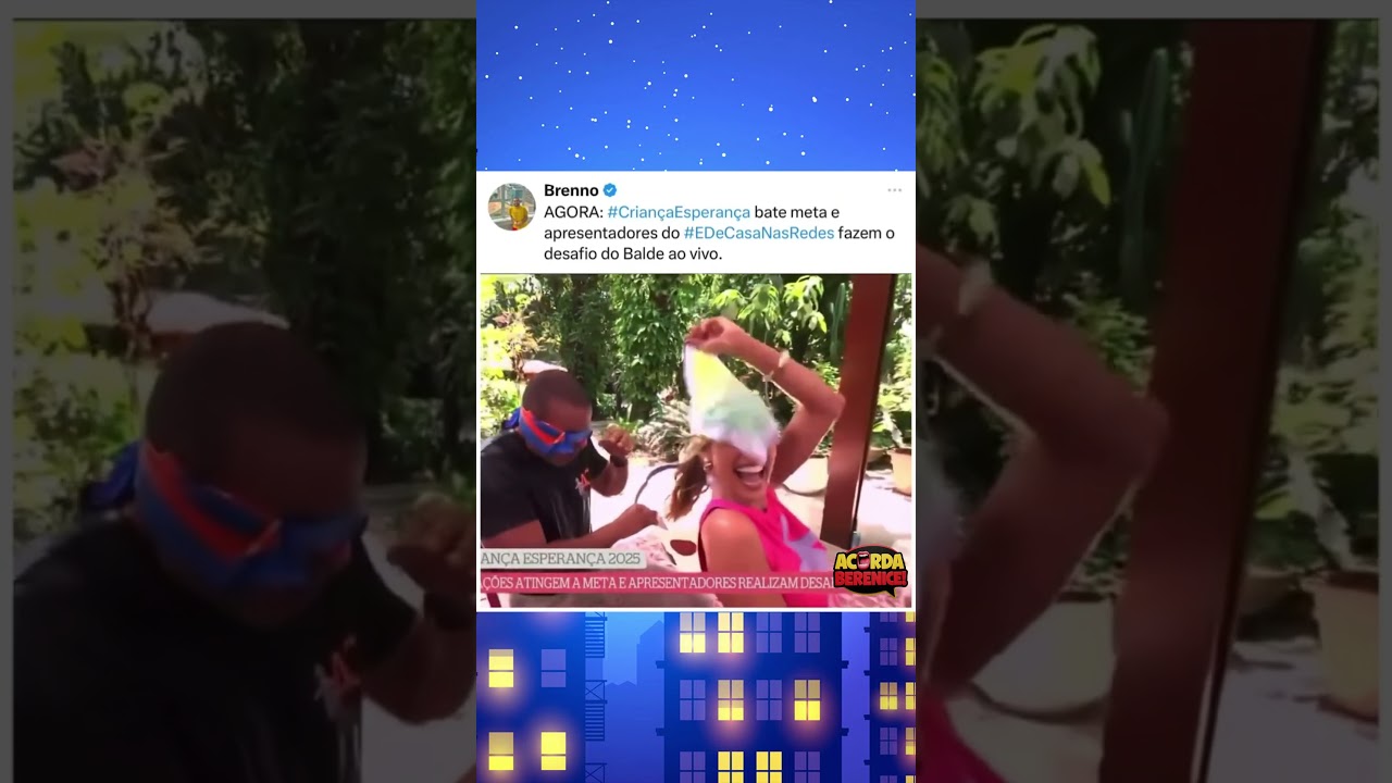 Apresentadores do ‘É De Casa’ fazem ‘Desafio do Balde’ na Globo ao bater meta no Criança Esperança.