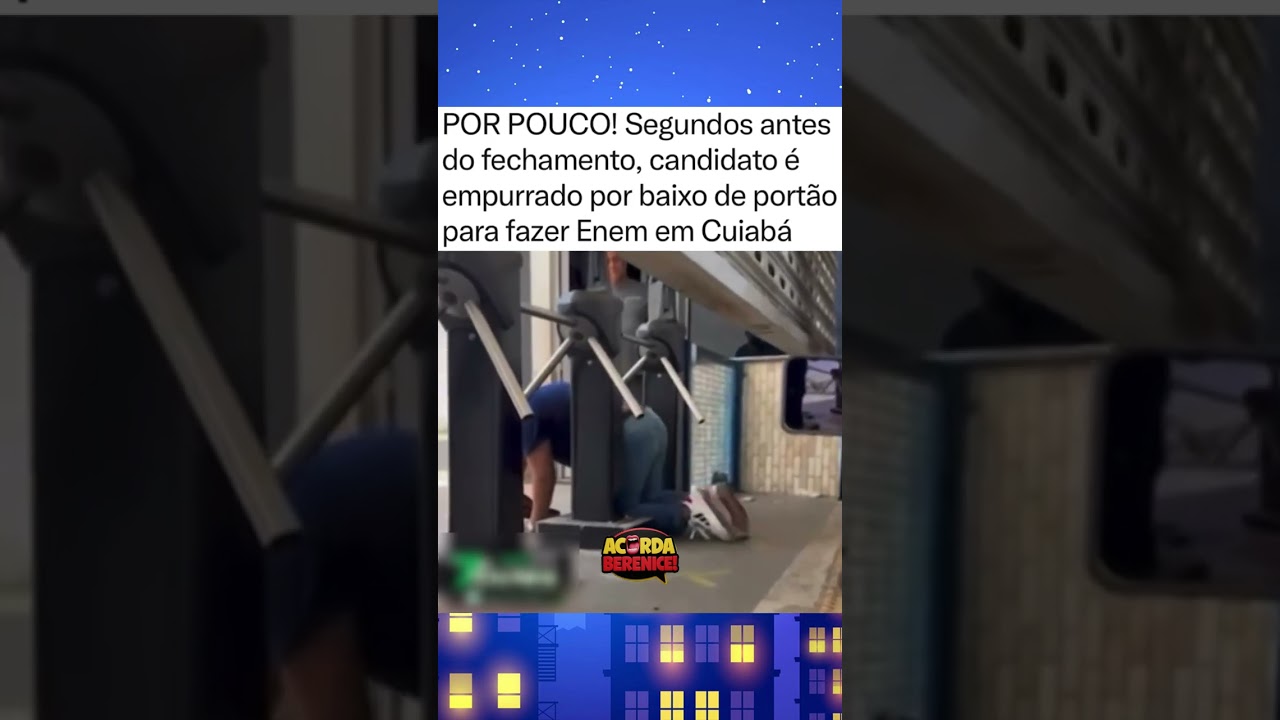 Segundos antes do fechamento, candidato é empurrado por baixo do portão para fazer o Enem em Cuiabá.