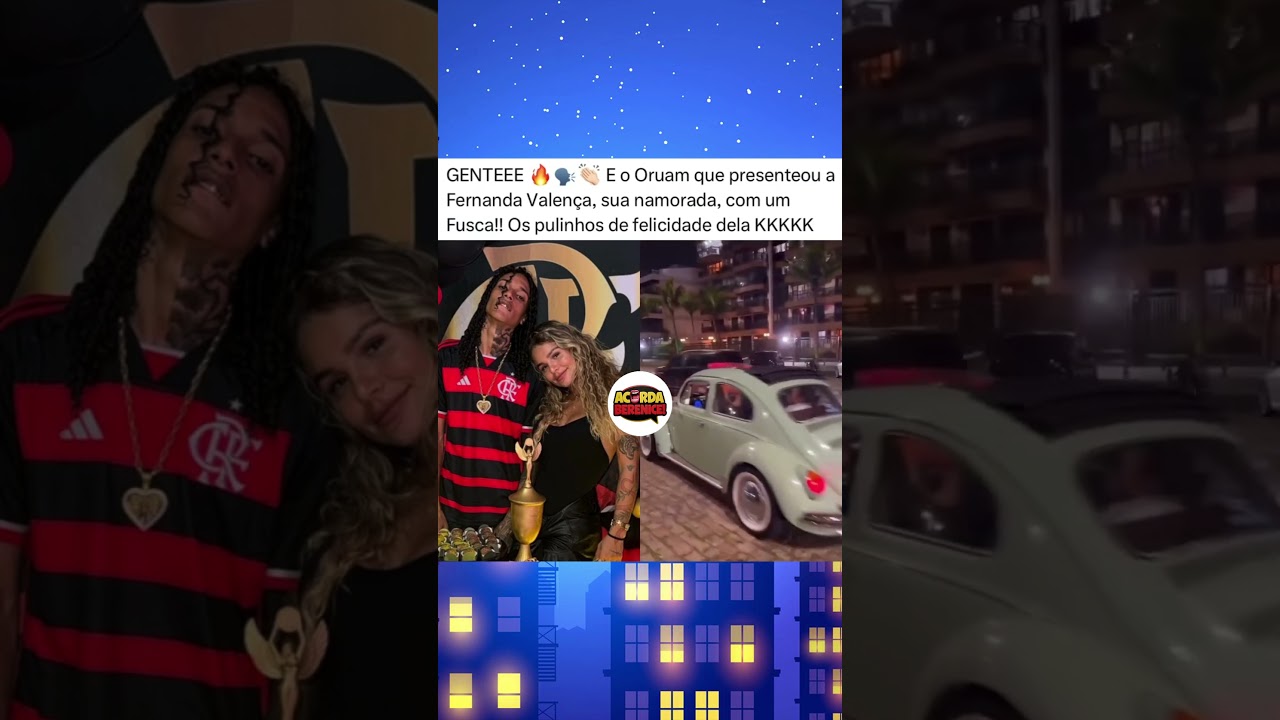 Teriam? Oruam presenteia namorada, Fernanda Valença, com um Fusca e faz a felicidade da moça.